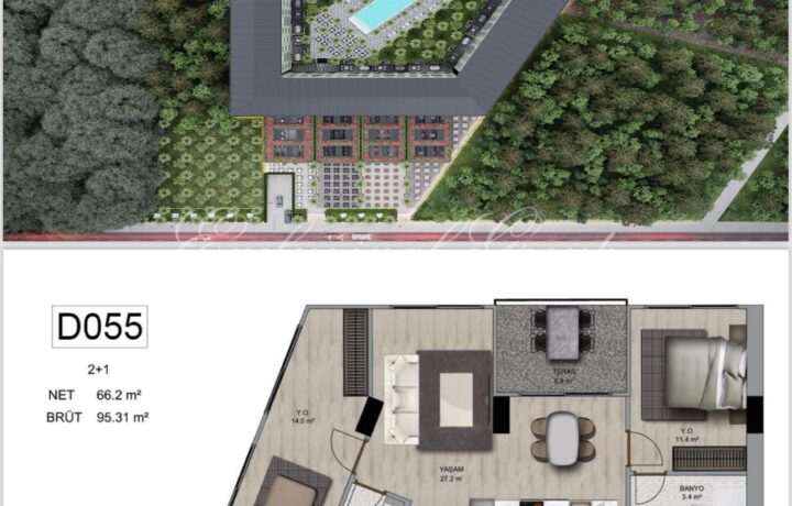 This property not only promises comfort and safety but also offers investment potential with Turkish citizenship eligibility. Spanning over 10,500 m2, the complex features various apartment types ranging from 1+1 to 5+1 duplexes, with prices starting at €300,000. Completion is scheduled for June 2025, making this an attractive opportunity for both residence and investment.